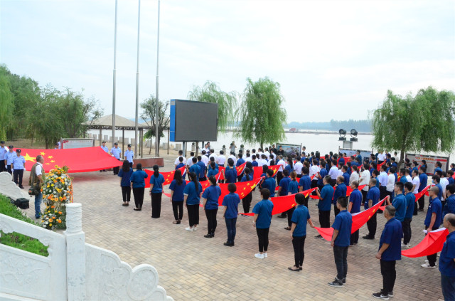 “身為華紡員工,時刻銘記我是炎黃子孫……”這是9月14日在周恩來紀(jì)念園(濱州)內(nèi)出現(xiàn)的一幕情景:公司在組織有500多名員工代表參加的“向國旗敬禮”主題活動中,現(xiàn)場發(fā)布了《華紡員工熱愛祖國誓詞》,并在領(lǐng)誦者團委書記張巖冰帶領(lǐng)下齊聲誦出。據(jù)了解,公司為慶祝新中國成立70周年,進一步激發(fā)廣大員工熱愛祖國、熱愛事業(yè)的熱情,組織開展了一系列內(nèi)容豐富的主題活動。