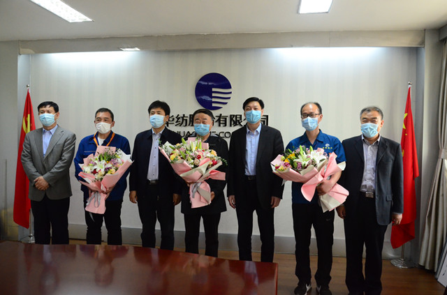 近日,五一勞動節(jié)來臨之際,濱州市市委常委、秘書長張延廷,市政協(xié)副主席、市總工會主席商玉昌,市總工會黨組書記、分管日常工作的副主席劉祖慶,市總工會黨組成員、副主席、經(jīng)審委主任王恩東一行,來到華紡股份有限公司,為濱州市五一勞動獎?wù)芦@得者、服裝車間主任晁金光頒發(fā)勞動獎?wù)?,向全國紡織行業(yè)勞動模范、山東省勞動模范、公司黨委書記、董事長王力民,山東省勞動模范、電氣高級工程師趙奇生和晁金光三位企業(yè)勞模代表贈送鮮花、表達(dá)慰問,并與他們進(jìn)行了深入座談。