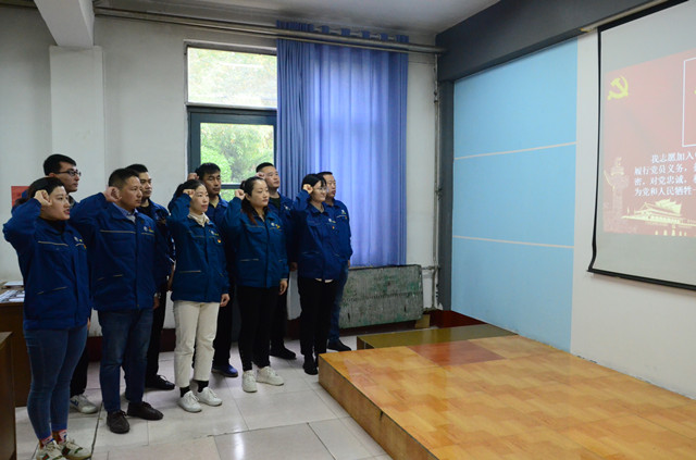 10月31日,公司在職工大學(xué)大教室開展了“不忘初心,牢記使命”主題黨日活動。會上,梁吉寧等九名新黨員由機(jī)關(guān)黨支部王雯文領(lǐng)誓,進(jìn)行入黨宣誓;機(jī)關(guān)黨支部蘆成雨代表新黨員做表態(tài)發(fā)言。之后,與會黨員代表一起學(xué)習(xí)了黨史教育專題片《中國有了共產(chǎn)黨-紅船起航》。