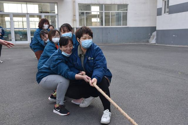 3月4日,春光明媚,清風(fēng)拂面。在公司工業(yè)園區(qū)職工食堂廣場上,氣氛異常熱烈;隨著女工拔河比賽開始的哨聲響起,比賽場上的隊員們鉚足了勁兒往后拉,場上助威加油的啦啦隊加油聲不停。