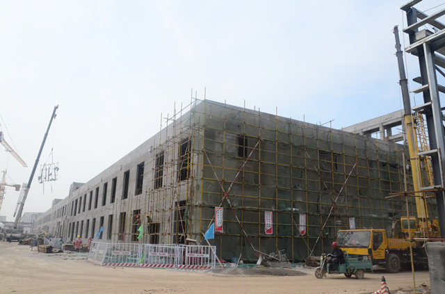 我們?cè)谕跗綆ьI(lǐng)下,在新廠房外圍參觀了一遍。他邊走邊說(shuō),面料車間整體完成進(jìn)度85%,車間主體工程已經(jīng)建設(shè)完成,設(shè)備基礎(chǔ)在緊鑼密鼓的建設(shè)中,預(yù)計(jì)6月底整體達(dá)到投產(chǎn)狀態(tài),8月底完成全部搬遷;家紡車間整體完成度80%,車間主體工程已經(jīng)建設(shè)完成,鋼結(jié)構(gòu)工程在加緊安裝中,預(yù)計(jì)6月底整體達(dá)到投產(chǎn)狀態(tài),8月底完成全部搬遷;服裝車間整體已經(jīng)全部完成,達(dá)到了整體搬遷條件;污水處理整體完成度95%,車間主體工程已經(jīng)建設(shè)完成,脫水機(jī)房工程尚在緊張建設(shè)中,預(yù)計(jì)4月底可投產(chǎn)運(yùn)行;食堂主體完成度95%,一二層主體工程已經(jīng)建設(shè)完成,預(yù)計(jì)在3月底能達(dá)到投產(chǎn)狀態(tài),三層尚在緊張裝修中,預(yù)計(jì)4月底能達(dá)到投產(chǎn)狀態(tài);助劑加工車間、紙管廠完成度65%,主體工程已經(jīng)基本建設(shè)完成,預(yù)計(jì)6月份達(dá)到投產(chǎn)狀態(tài)。