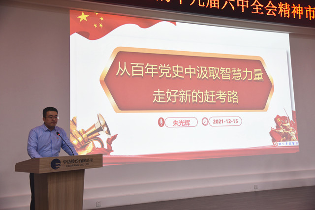導(dǎo)讀:12月18日,市委宣講團(tuán)成員、市政協(xié)臺(tái)港澳僑和外事委員會(huì)副主任朱光輝來(lái)到公司,對(duì)黨的十九屆六中全會(huì)精神進(jìn)行專(zhuān)題宣講。
