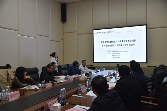 導(dǎo)讀:1月14日,山東省重點(diǎn)研發(fā)計(jì)劃(公益類)項(xiàng)目“基于廢棉織物的胺化纖維素樹脂的合成及其對含氟表面活性劑和染料的有效去除”項(xiàng)目驗(yàn)收會議在公司舉行。