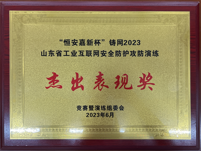 6月19日,由山東省通信管理局組織的“恒安嘉新杯”鑄網(wǎng)2023山東省工業(yè)互聯(lián)網(wǎng)安全防護(hù)技能競賽暨攻防演練在濟南舉辦,由公司信息中心組成的華紡隊以卓越的表現(xiàn)獲得由山東省通信管理局頒發(fā)的“杰出表現(xiàn)獎”。