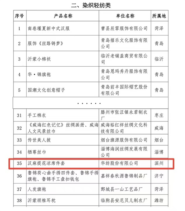 “山東手造”是省委、省政府發(fā)揮文化資源豐厚、傳統(tǒng)工藝品類齊全的優(yōu)勢,創(chuàng)新打造的文化創(chuàng)意區(qū)域公共品牌,是塑造山東文化創(chuàng)意產(chǎn)業(yè)發(fā)展新優(yōu)勢的重要抓手。按照省委、省政府關(guān)于推進(jìn)“山東手造”工程的部署安排,本次“山東手造·優(yōu)選100”遴選活動共分為傳統(tǒng)美術(shù)類、染織輕紡類、文玩用品類、刻塑鑄造類、木作家具類、傳統(tǒng)食品類六大類。其中,公司家紡床品產(chǎn)品——漢麻提花涼席件套作為染織輕紡類,成功入選2023“山東手造·優(yōu)選100”名單,這無疑是對公司產(chǎn)品品質(zhì)與工藝的高度認(rèn)可。
