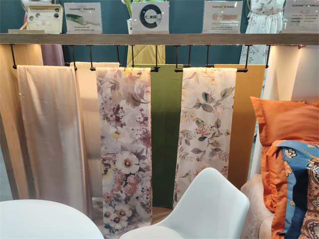 此屆法蘭克福家紡展,華紡股份家紡分公司打造了以“Green world”為主題,以綠色環(huán)保可持續(xù)的特色纖維產(chǎn)品為主材質(zhì),研發(fā)了醋酸系列/真橙系列/木棉系列/絲質(zhì)系列/超柔系列/麻系列六大系列產(chǎn)品,從材質(zhì)、功能、膚感、科技、花型、款式等多方面對產(chǎn)品進行了融合升級,吸引了來自法國、意大利、葡萄牙等諸多國家的客戶進入展位進行咨詢洽談!其中,迎合歐洲市場喜好的亞麻、漢麻提花、色織簡約條紋產(chǎn)品也成功吸引了來自歐美的客戶。