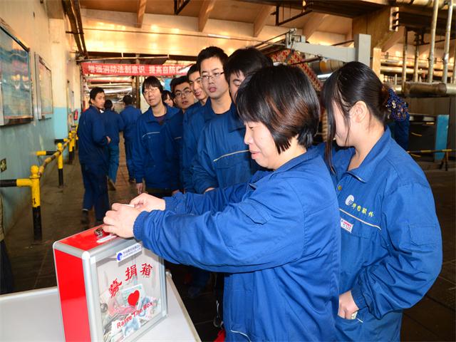 導讀:熱力公司,花一車間廣大員工為患病的制安車間鈑金工劉巖森捐獻愛心。