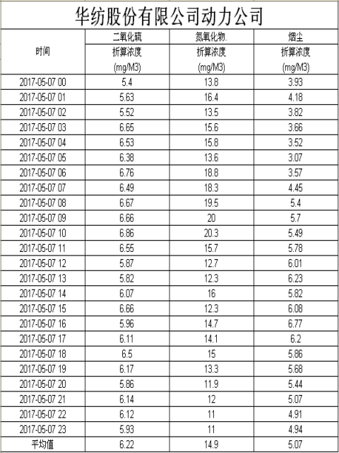 煙氣排放數(shù)據(jù)信息公開2017.5.7數(shù)據(jù)