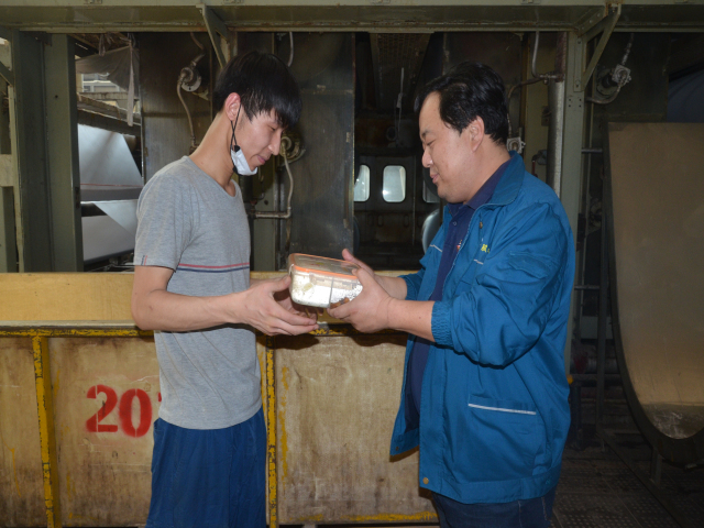 “紅燒肉、炸魚、雞腿、花卷、酸辣土豆絲”,這是公司為3月份過(guò)生日的50名單身員工準(zhǔn)備的單身員工生日餐。中午下班后,“壽星”們陸續(xù)來(lái)到餐廳領(lǐng)取屬于自己的生日餐,研究院李佳奇打開生日餐盒,直言道“好香啊”。對(duì)于生產(chǎn)崗位三班員工,車間將統(tǒng)一領(lǐng)取,送到“壽星”所在的崗位。這不,今天中午家紡車間主任王旭洲早早地領(lǐng)到孔慶凡和王亞開兩位員工的生日餐,并送到了他們的手中。